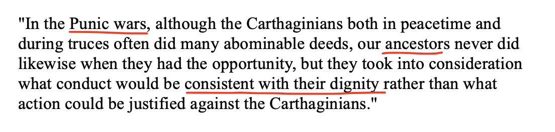 Caesar’s point in this speech: Showing restraint was essential to the Romans coming to dominate the world. (Respect from allies, civic concord, etc.) –> Restraint here is in YOUR BEST INTERESTS
