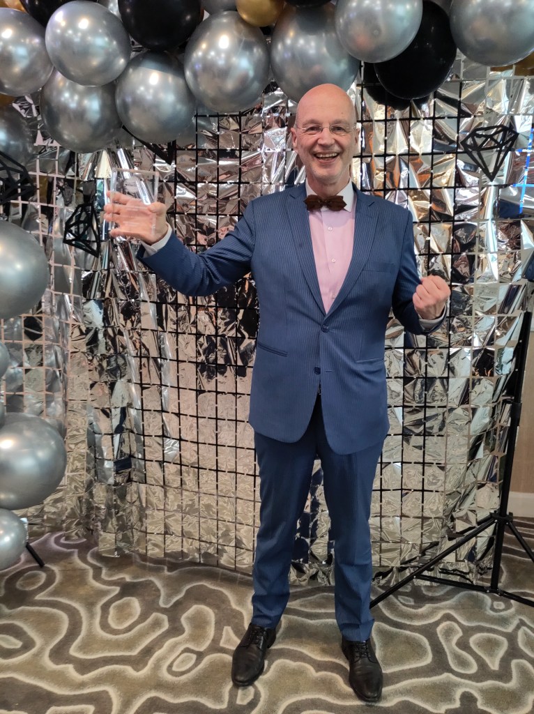 En de winnaar is: Eric Schoenmaker, uitstekend spreker en (ex)voorzitter van de Apeldoorn Toastmasters! Hij won op 25 mei 2024 de finale spreken in het openbaar/Nederlands van District 59 in Antwerpen met een toespraak over zijn overleden vader.