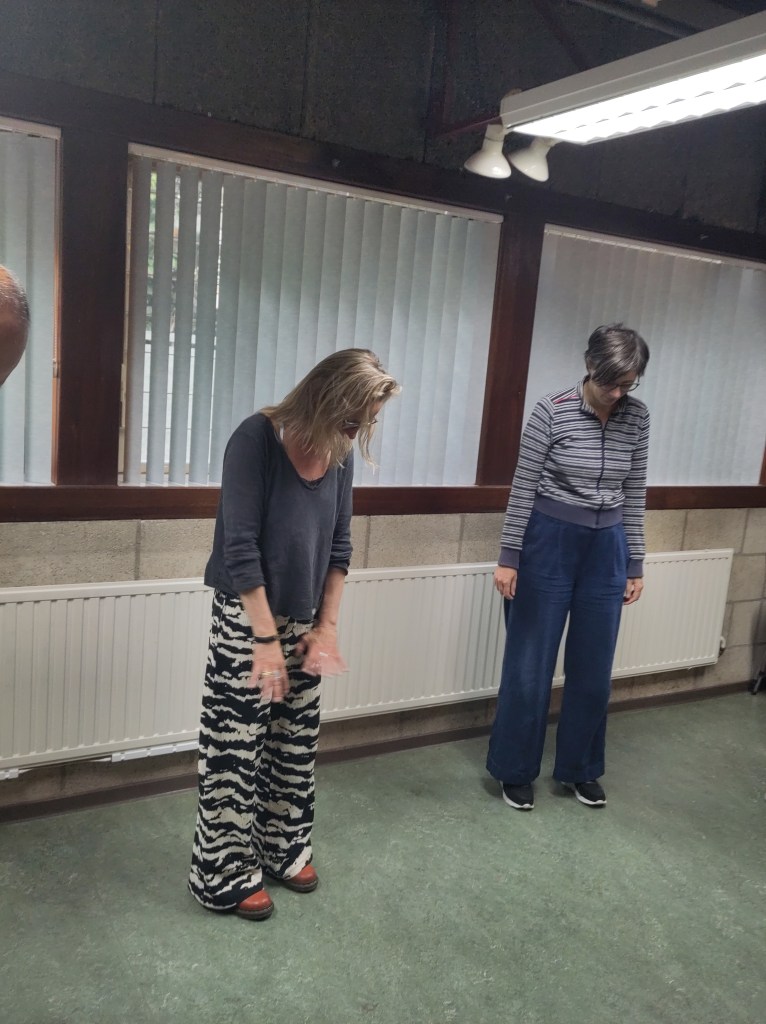 De groep was relatief klein, maar tien leden, mede vanwege treinstaking, maar dat bleek precies goed voor deze intensieve avond. De aanwezigen hadden allemaal een korte neutrale tekst van een paar zinnen, een tekstje over gezinnen in het Vondelpark. De hele oefening bestond er uit om één voor één deze tekst zo neutraal mogelijk voor te dragen. “Het was een vast trainingsonderdeel bij de Toneelschool”, vertelde Margriet. “Ik heb het drieënhalf jaar iedere week gedaan.”