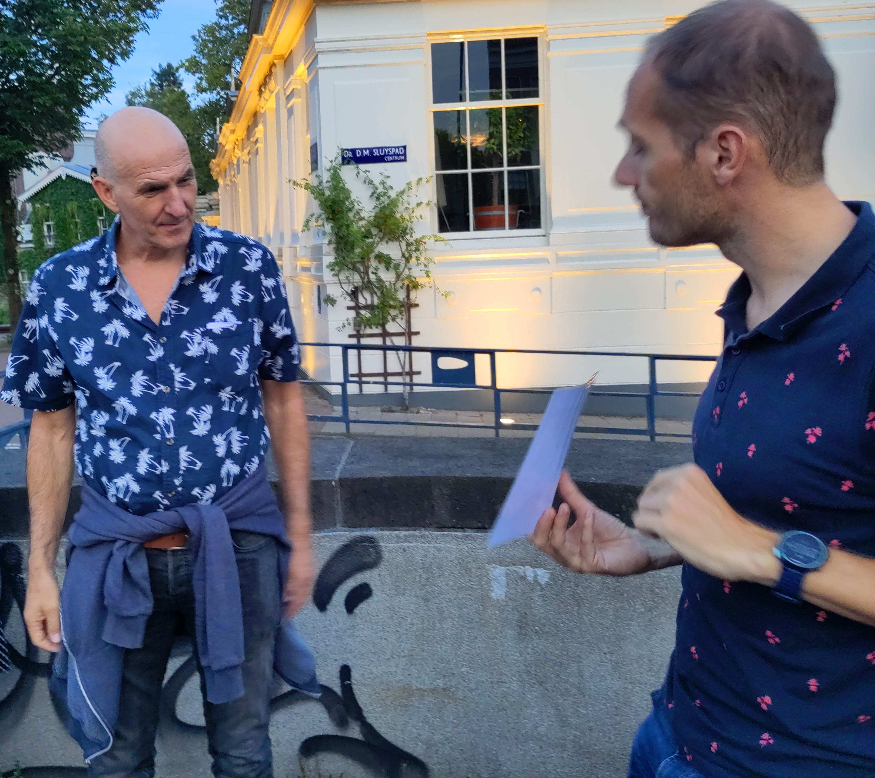 De vertelwandeling is een geslaagde jaarlijkse traditie. Ooit uit nood geboren: zaaltjes zijn duur, dus waarom zou je niet op een mooie zomeravond vlak na de vakantie in plaats van binnen, buiten bijeenkomen? Inmiddels hebben we op allerlei plekken vertelwandelingen gehouden: bij het Museumplein, rond Artis en de Dokwerker, vorig jaar in Betondorp – met na afloop een goed glas wijn, bier of een sjuutje, om te toasten op het eind van het vorige seizoen en het begin van het volgende.